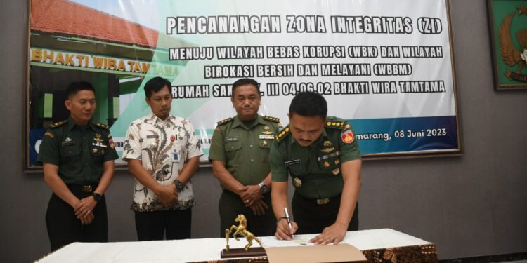 Semarang – bedanews.com – Demi mewujudkan wilayah yang tertib reformasi birokrasi, Karumkit Bhakti Wira Tamtama, Letkol Ckm dr. Anton Tri Prasetiyo, Sp. OG., mewakili Kakesdam IV/Diponegoro, Kolonel Ckm dr. Bima Wisnu Nugroho, Sp.THT, M.Kes, M.A.R.S, mencanangkan Zona Integritas Menuju Wilayah Bebas Korupsi (WBK) dan Wilayah Birokrasi Bersih dan Melayani (WBBM), bertempat di Aula Rumkit, Kamis (8/6/2023).