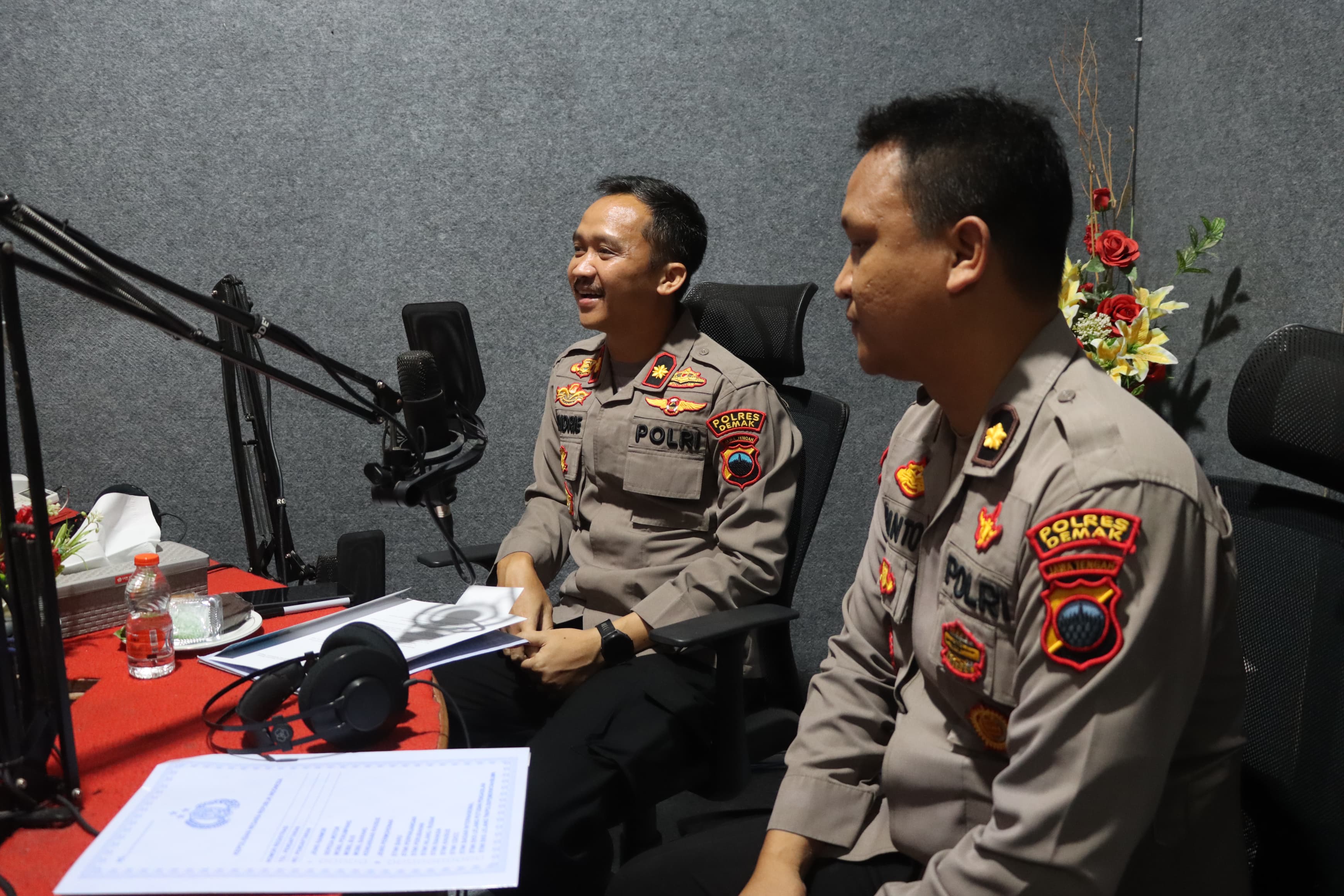 DEMAK || Bedanews.com – Wakil Kepala Kepolisian Resor (Wakapolres) Demak, Kompol Hendrie Suryo Liquisasono, menjadi narasumber dalam talk show sosialisasi program pemerintah di bidang ketahanan pangan dan manajemen makanan bergizi gratis (MBG) yang digelar di LPPL Radio Suara Kota Wali 104.8 FM, Jalan Sultan Fatah, Bogorame, Bintoro, Demak, Senin (20/10/2025) siang.