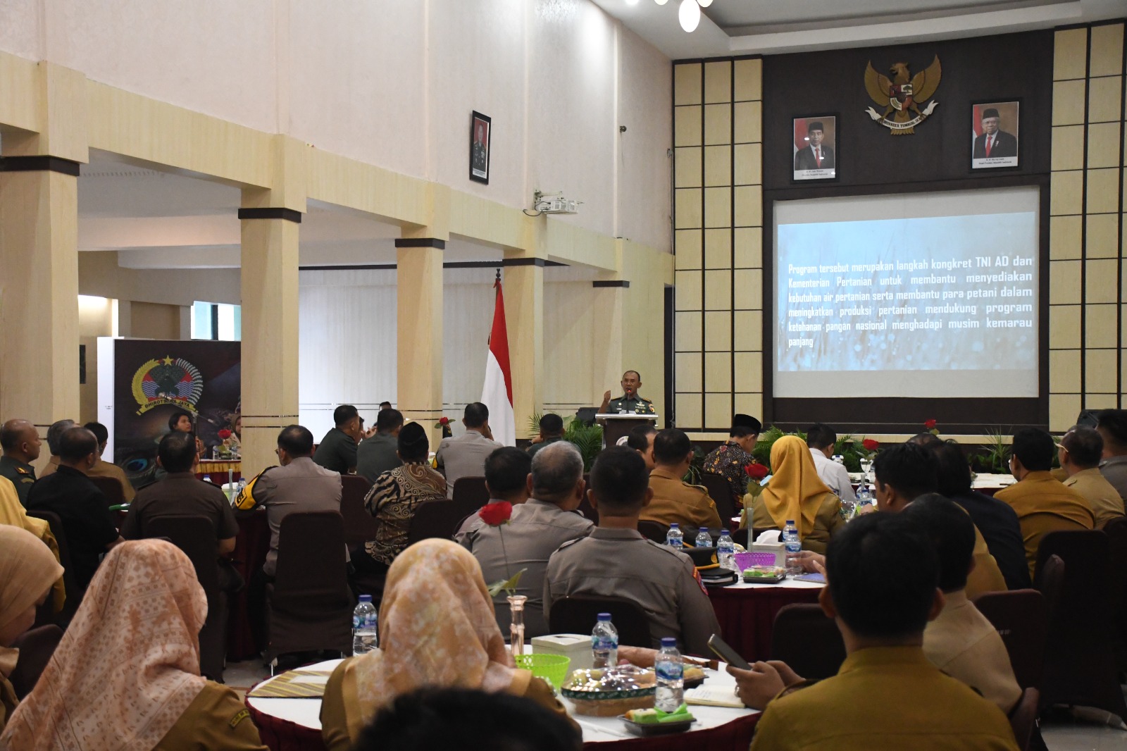 “Sebagai negara kepulauan yang memiliki keragaman alam luar biasa, perubahan iklim global menyebabkan berbagai dampak negatif di Indonesia, salah satunya perubahan iklim. Kondisi itu mengakibatkan terjadinya kemarau panjang yang berdampak terhadap menurunnya produktivitas pangan, dan lebih luas lagi terjadinya krisis pangan,” kata Danrem 081/DSJ, Kolonel Inf H. Sugiyono dalam sambutannya pada acara Komsos dengan Aparatur Pemerintahan (Appem) di Aula Jenderal Sudirman Makorem 081/DSJ, Jl. Pahlawan No. 50 Kota Madiun, Selasa (14/5/2024).