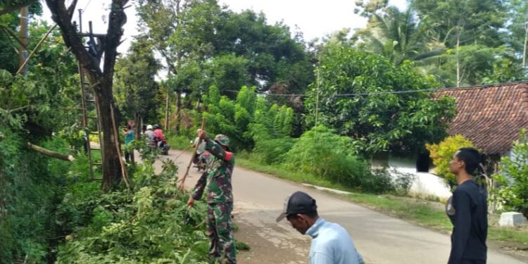 Koramil 0801/01 Pacitan Bersama Warga Kerja Bakti Bersihkan Lingkungan