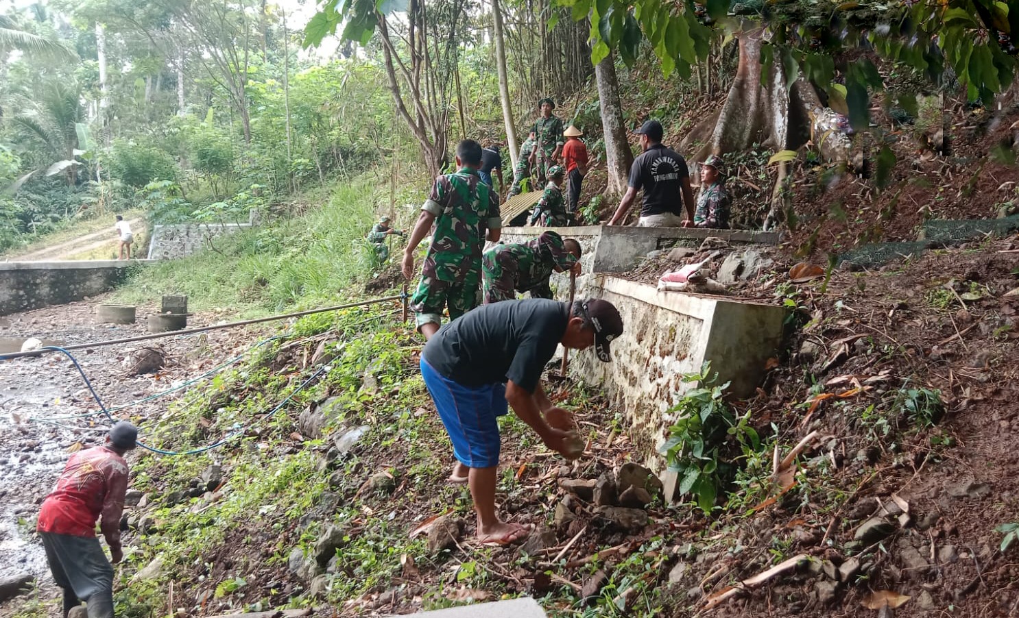 Trenggalek – bedanews.com – Semangat gotong-royong dan kepedulian terhadap lingkungan kembali terpancar di Desa Pringapus, Kecamatan Dongko, Kabupaten Trenggalek. Koramil 0806/13 Dongko turut serta bersama warga dalam sebuah kegiatan karya bakti pembersihan sumber mata air yang vital bagi masyarakat Dusun Picis, Sabtu (6/1/2024).