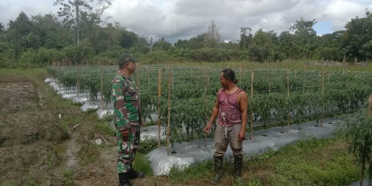 Timika, bedanews.com – Komsos terus dilakukan para Babinsa jajaran Kodim 1710/Mimika sebagai bentuk upaya dalam menjaga kebersamaan antara TNI dan rakyat serta memahami kondisi masyarakat di lapangan. Seperti halnya yang dilakukan oleh Babinsa Koramil 1710-03/Kuala Kencana, Kopda Arif Teguh yang melaksanakan Komsos dengan petani cabai di wilayah binaannya di Kp. Bhintuka SP13, Distrik Kuala Kencana, Kabupaten Mimika, Jumat (09/08/2024).