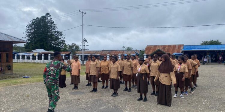 Oksibil, bedanews.com – Koramil 1715-01 Oksibil yang berada di bawah naungan Kodim 1715/Yahukimo menggelar kegiatan pembinaan Pramuka untuk siswa-siswi SMPN 1 Oksibil, Senin (13/5/2024). Kegiatan ini dilakukan dengan tujuan untuk melatih disiplin dan pengetahuan tentang wawasan kebangsaan bagi para siswa-siswi.
