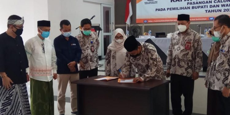 TASIKMALAYA, BEDAnews.com – Komisi Pemilihan Umum (KPU) Kabupaten Tasikmalaya menggelar sidang pleno terbuka di Gedung Majelis Utama Indonesia (MUI). Jalan Cipakat Kecamatan Singaparna Kabupaten Tasikmalaya, Minggu (21/03/2021).