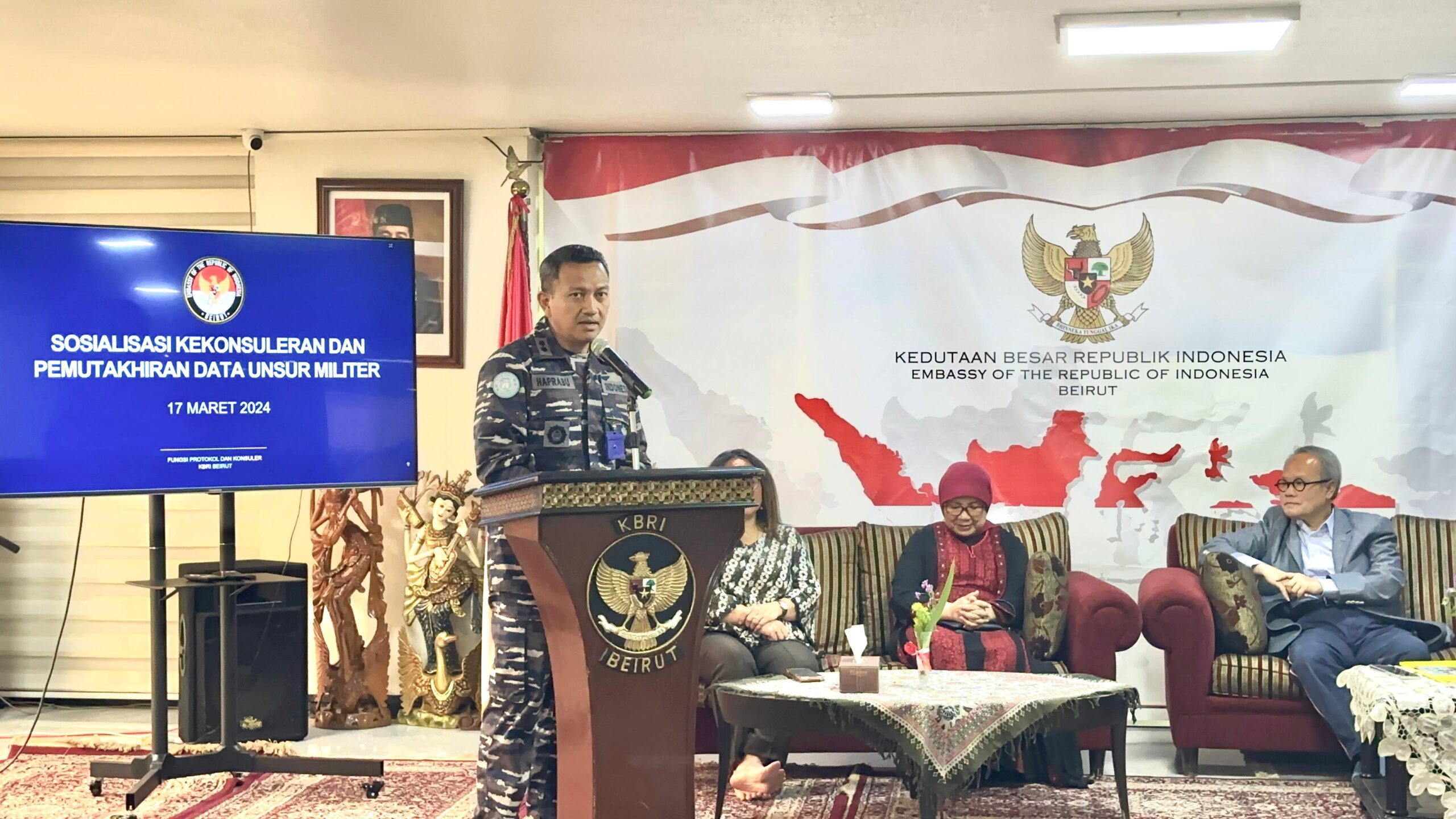 Lebanon – KRI Diponegoro-365 yang merupakan Satgas MTF TNI XXVIII-O UNIFIL mengikuti kegiatan kekonsuleran yang diadakan oleh Kedutaan Besar Republik Indonesia (KBRI) di Beirut, Lebanon pada Minggu (17/03/2024)