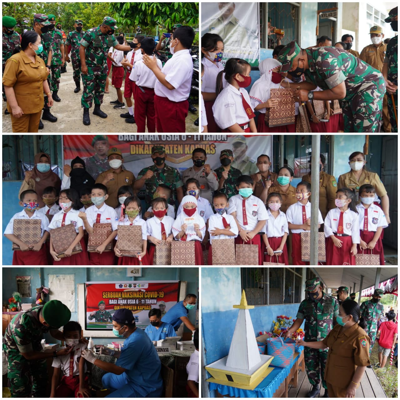 Kapuas – bedanews.com – Komandan Korem 102/Pjg, Brigjen TNI Yudianto Putrajaya, S.E, M.M meninjau vaksinasi Covid-19 bagi anak-anak dan lansia di SDN 2 Selat Dalam, kecamatan Selat, kabupaten Kapuas, pada hari Senin (21/22).