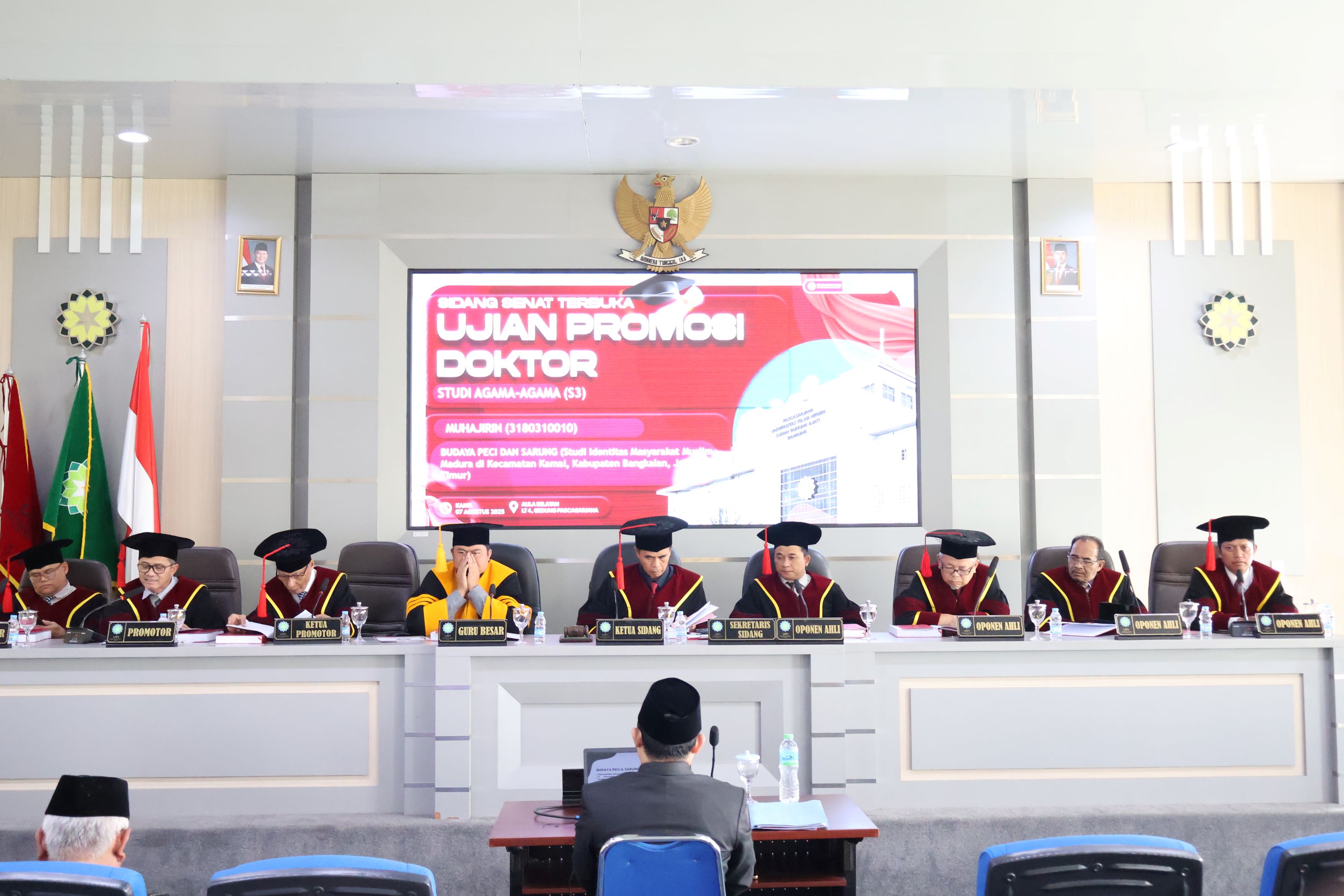 Dihadapan tim penguji dalam sidang terbuka,Muhajirin mampu menjawab semua pertanyaan yang diajukan penguji. Bahkan dengan dengan argumentatif dan rasional Ia bisa memaparkan dengan detail semua sanggahan penguji.