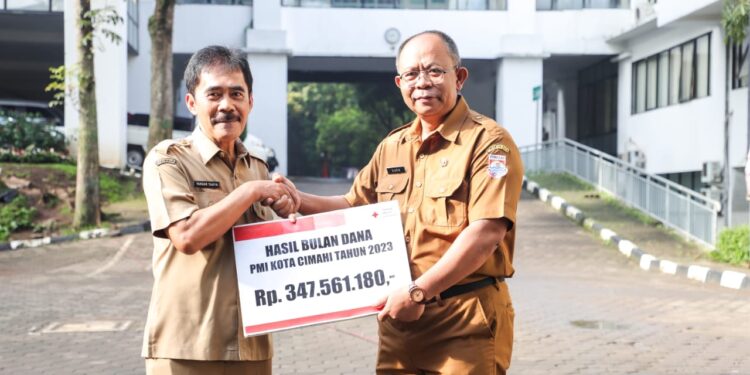 CIMAHI, BEDANews.com – Palang Merah Indonesia (PMI) Kota Cimahi melalui Panitia Bulan Dana berhasil menghimpun dana sebesar Rp 347.561.180,- (Tiga ratus empat puluh tujuh juta lima ratus enam puluh satu ribu seratus delapan puluh rupiah) dalam kegiatan Bulan Dana PMI Tahun 2023. Raihan tersebut melampaui target yang telah ditetapkan sebesar 101,6 % dari target yaitu sebesar Rp 341.945.000,- (Tiga ratus empat puluh satu sembilan ratus empat puluh lima ribu rupiah). Sekretaris Daerah Kota Cimahi Dikdik S. Nugrahawan menerima secara langsung penyerahan hasil Bulan Dana PMI Kota Cimahi tahun 2023 dari Ketua Panitia Bulan Dana PMI Tahun 2023 Yanuar Taufik yang acara penutupannya dirangkaikan dengan Apel Pagi ASN dilingkungan Pemerintah Daerah Kota Cimahi bertempat di lapangan Apel Pemkot Cimahi pada Senin (08/01/2024).