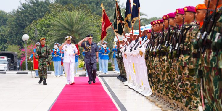 Jakarta – Panglima TNI Laksamana TNI Yudo Margono menerima kunjungan kehomatan Panglima Angkatan Bersenjata Selandia Baru. Marsekal Madya Kevin Short dalam rangka membicarakan beragam isu strategis yang menjadi kepentingan bersama untuk lebih meningkatkan dan memperluas hubungan bilateral dan kerja sama militer antara Tentara Nasional Indonesia (TNI) dan Angkatan Bersenjata Selandia Baru, di Mabes TNI Cilangkap, Jakarta Timur, Jumat (6/10/2023).