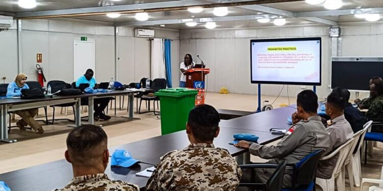 Afrika – Bentuk peran serta kontingen Satgas di MINUSCA dalam pelestarian lingkungan di daerah misi, personel Satgas Kizi TNI Konga XXXVII-J Multidimentional Integrated Stabilization Mission in the Central African Republic (MINUSCA CAR) mengikuti “Enviromental Focal Point Training” yang di selenggarakan oleh Enviroment Unit of MINUSCA CAR, bertempat di Ucatex Main Conference Room. Bangui, Afrika Tengah. Selasa (23/01/24).