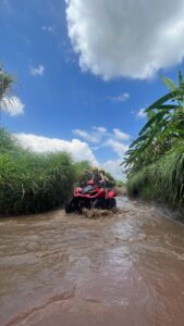 Untuk memulai hari dengan semangat diawali dengan petualangan seru bermain ATV. Menjelajahi track yang memacu adrenalin, melewati persawahan hijau, hutan rimbun, dan sungai merupakan pengalaman yang tak terlupakan dimana adrenalin terpacu sembari menikmati pemandangan alam yang indah memanjakan mata. Tour Guide di permainan ATV ini pun ramah sekali mereka menawarkan jasa untuk merekam kami pada saat bermain ATV, so jangan lupa siapkan battery handphone kamu kalau mau mengabadikan momen ini!