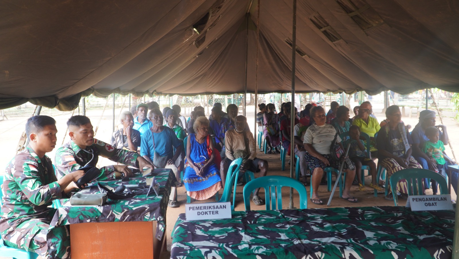 Satgas Yonif 312/KH Gelar Pemeriksaan Kesehatan Gratis dan Bagikan Sembako di Kampung Sota