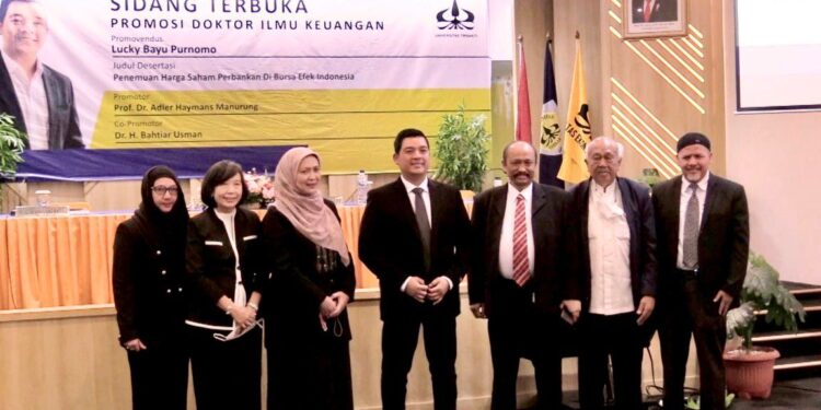 Jakarta – bedanews.com – Lucky Bayu Purnomo berhasil meraih gelar doktor dengan hasil dan predikat SANGAT MEMUASKAN melalui disertasi dengan judul penemuan harga saham perbankan di Bursa Efek Indonesia.