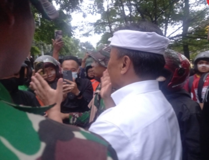 Sekda Jabar Herman Suryatman yang datang bersama Dandim Kota Bandung dengan dikawal 10 anggota Dandim Bandung melakukan negosiasi kepada pendemo dengan mengembalikan seorang pendemo yang sempat tertangkap.