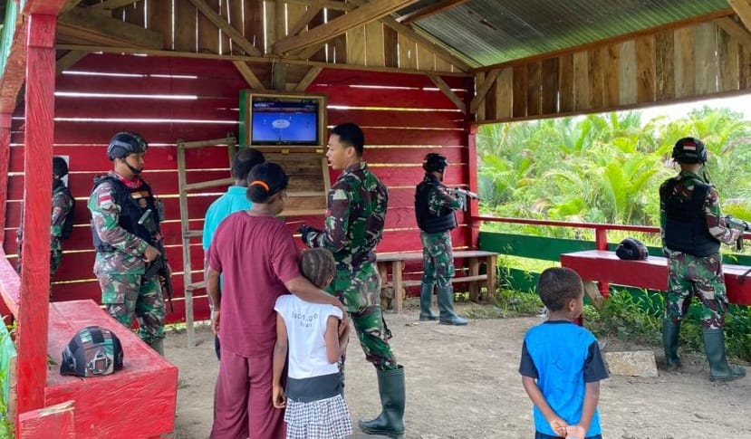Masyarakat Gembira Satgas Yonif 143/TWEJ Benahi Sarana Hiburan di Pedalaman Papua