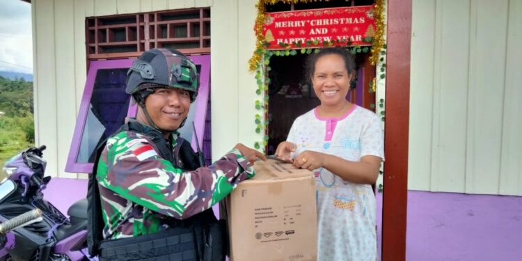 YALIMO – bedanews.com – Banyak cara untuk lebih dekat dan membuat hati Rakyat lebih dengan kita, inilah cara yang dilakukan oleh Satgas Yonif Raider 142/KJ yaitu dengan berbagi sembako yang dilakukan di Kampung Pirip, Distrik Elelim Kabupaten Yalimo, Provinsi Papua Pegunungan, Senin (09/01/2023).