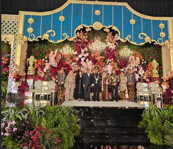 FOTO BERSAMA-Ketua KPK RI, Komjen Pol (Purn) Setyo Budiyanto bersama Istri, foto bersama Pengantin Jihan Nabila, S.Sos, Putri dari Bapak Irjen Pol. (P) Dr. Rokhmad Sunanto, M.M., M.H & Ibu Elfira Hanum, dengan Ipda Hanif Aryoseno, S.Tr.K., M.H, Putra dari Bapak Hendro Subroto, S.E & Ibu drg. Hapsari Budiarti. (Foto Ist).
