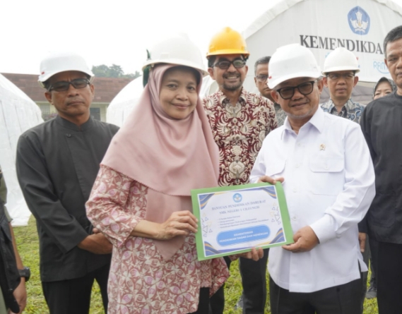 Mendikdasmen Abdul Mu’ti bersama Kadisdik Jabar, Purwanto mengunjungi SMKN 1 Cileungsi, Kab.