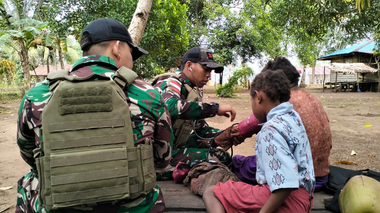 Merauke – Dalam upaya meningkatkan derajat kesehatan masyarakat di wilayah perbatasan, Satgas Pamtas RI-PNG Yonif 312/Kala Hitam Pos Rawabiru melaksanakan kegiatan Kesehatan Keliling (Kesling). Kegiatan ini dipimpin oleh Serda Ego bersama 5 orang prajurit serta 3 personel Satgas Kesehatan yang dipimpin Sertu Malki di Kampung Rawabiru, Distrik Sota, Kabupaten Merauke, Jumat (17/10/2025).