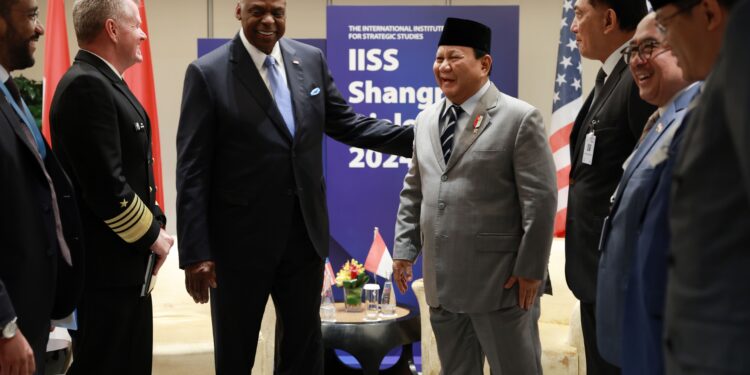 Jakarta, bedanews.com – Menteri Pertahanan Republik Indonesia Prabowo Subianto bersama Menteri Pertahanan Amerika Serikat Lloyd J. Austin III melakukan pertemuan di sela-sela kegiatan IISS Shangri-La Dialogue 2024 di Singapura, Sabtu (1/6/2024).