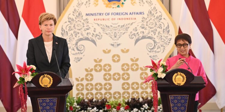 “Meskipun secara geografis Indonesia dan Latvia terpisah oleh jarak, tapi kita memiliki nilai-nilai dan aspirasi yang sama untuk perdamaian dan stabilitas global, serta kemakmuran kedua bangsa kita,” ucap Retno.