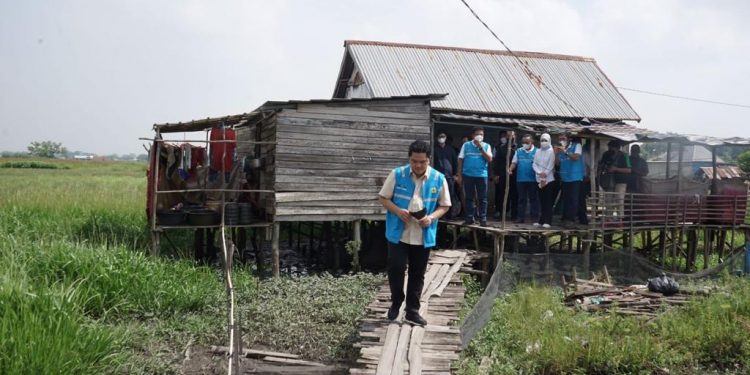 Menteri Badan Usaha Milik Negara (BUMN), Erick Thohir hadir meresmikan penyalaan listrik rumah penerima bantuan penyambungan listrik, ada enam perwakilan penerima bantuan yang bekerja sebagai petani dan pemulung.