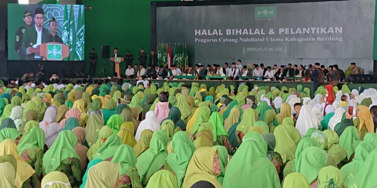 KAB. BANDUNG || bedanews.com — Bupati Bandung, HM. Dadang Supriatna, pada sambutannya di acara Halal Bihalal dan Pelantikan Pengurus Cabang Nadhlatul Ulama (NU) Kabupaten Bandung, di Doom Balerame, Minggu 22 Mei 2022, menyatakan sangat bahagia bisa berkumpul bersama-sama dalam upaya meningkatkan tali sikaturahmi sesama pengurus dan anggota NU.