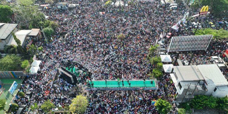 Jakarta – bedanews.com – Pagi ini sejutaan lebih Rakyat Indonesia berkumpul di Sidoarjo, Jawa Timur bersama Anies dan Muhaimin. Syaiful Huda, wakil sekjen PKB, memberikan saya foto dan video rekaman massa di sana. Untung saja Metro TV menyiarkan live acara tersebut, sehingga memungkinkan semua orang melihat peristiwa tersebut.