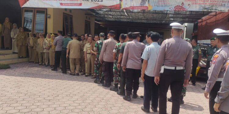 Tulungagung – bedanews.com – Danramil Tipe B 0807/05 Ngunut, Lettu Inf Gatot Priyadi bersama Muspika Ngunut dan anggota menghadiri kegiatan Tasyakuran Hari PGRI dan Hari Guru Nasional Tahun 2023 di kantor Unit Pelayananan Administrasi Satuan Pendidikan (UPASP) Kecamatan Ngunut, Kabupaten Tulungagung, Senin (27/11/2023).
