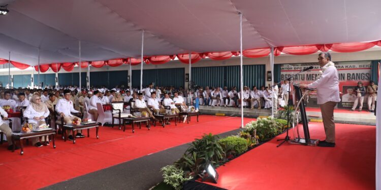 Bekasi – bedanews.com – Sekjen Partai Gerindra, Ahmad Muzani menghadiri rangkaian HUT ke-15 Partai Gerindra sekaligus konsolidasi di Kabupaten Bekasi, Sabtu (4/2/2023).