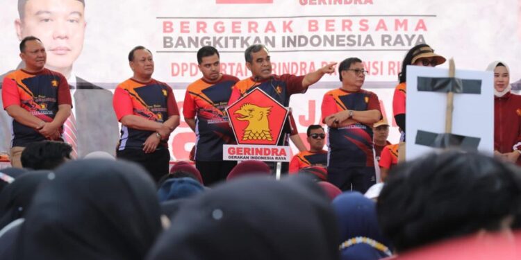 Riau – bedanews.com – DPD Partai Gerindra Riau menggelar acara jalan sehat dan pesta rakyat dalam rangka memperingati HUT ke-15 Partai Gerindra di Kota Pekanbaru, Riau, Minggu (26/2/2023).