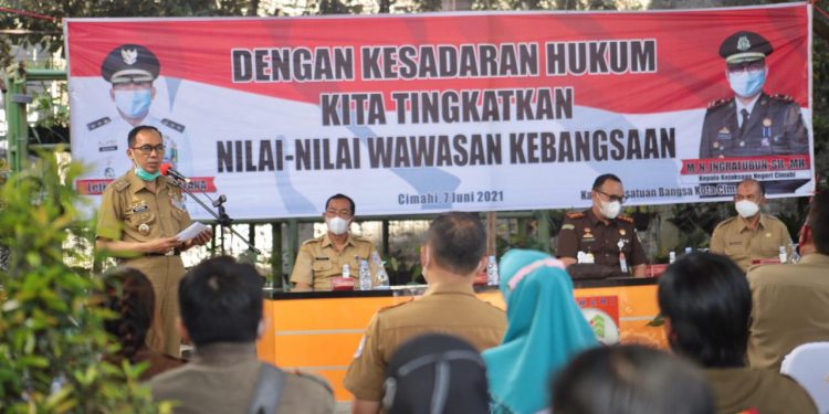 Demikian diutarakan Pelaksana Tugas (Plt.) Wali Kota Cimahi Ngatiyana usai membuka kegiatan Peningkatan Wawasan Kebangsaan Terkait Penyuluhan Tentang Ketaatan Hukum Dalam Rangka Pemahaman Nilai-Nilai Idelogi Pancasila, bertempat di Halaman Kantor Kelurahan Cigugur Tengah, Jl. Abdul Halim Nomor 140 B, Kecamatan Cimahi Tengah Kota Cimahi pada Senin (07/06/2021).