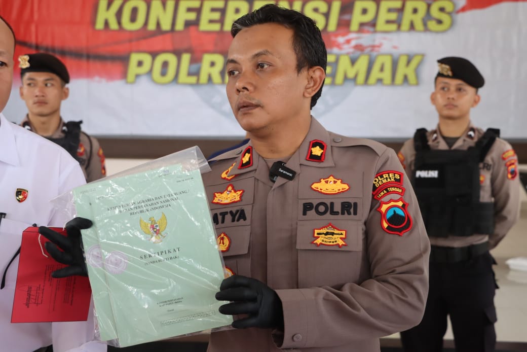 DEMAK || Bedanews.com – Satuan Reserse dan Kriminal (Satreskrim) Polres Demak mengungkap kasus pemalsuan sertifikat tanah di Desa Bandungrejo, Kecamatan Mranggen, Kabupaten Demak.