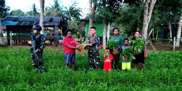 Merauke,- Upaya meningkatkan perekonomian masyarakat melalui ketahanan pangan, personel Satgas Yonif 726/Tml Pos Bupul 12 melaksanakan pemanfaatan lahan kosong sekitar Pos, Sabtu (13/01/2024).