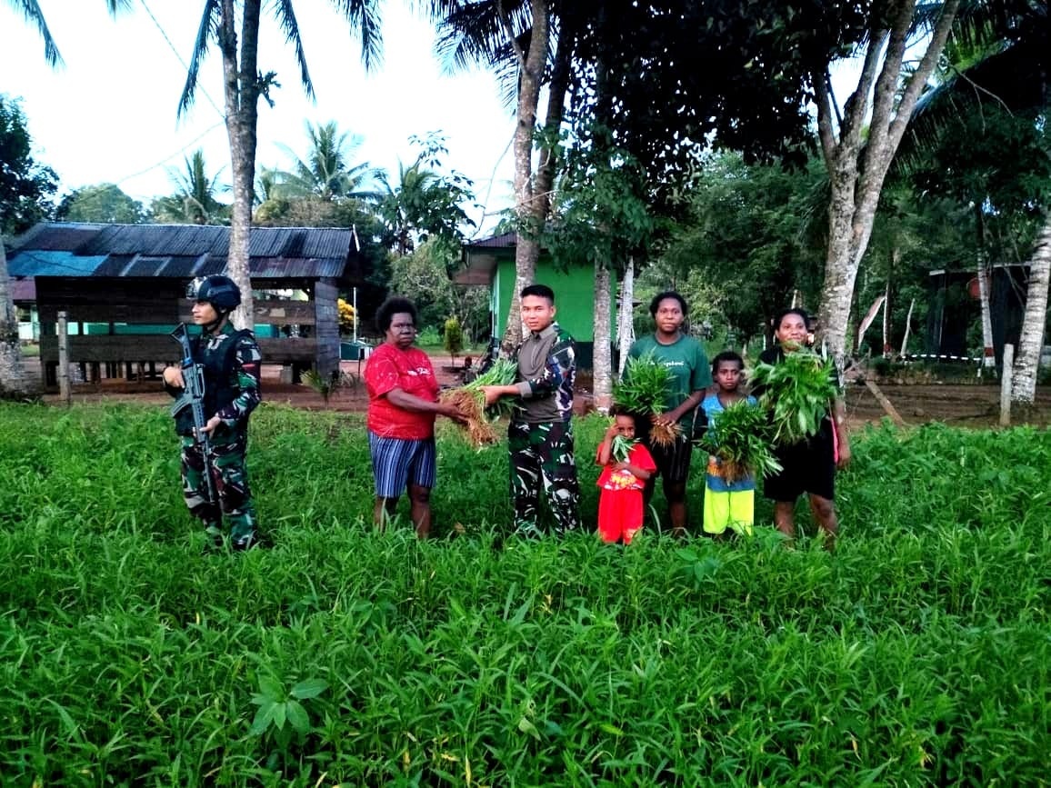 Di sela-sela waktu kosong tanpa mengganggu tugas pokok, personel Satgas menanam tanaman sayuran jenis kangkung, bayam, terong, sawi dan kol yang hasilnya dapat di konsumsi sehari-hari dan sebagian hasil panen dibagikan kepada masyarakat Kampung Baidub, Distrik Ulilin untuk memenuhi kebutuhan sayur mayur.