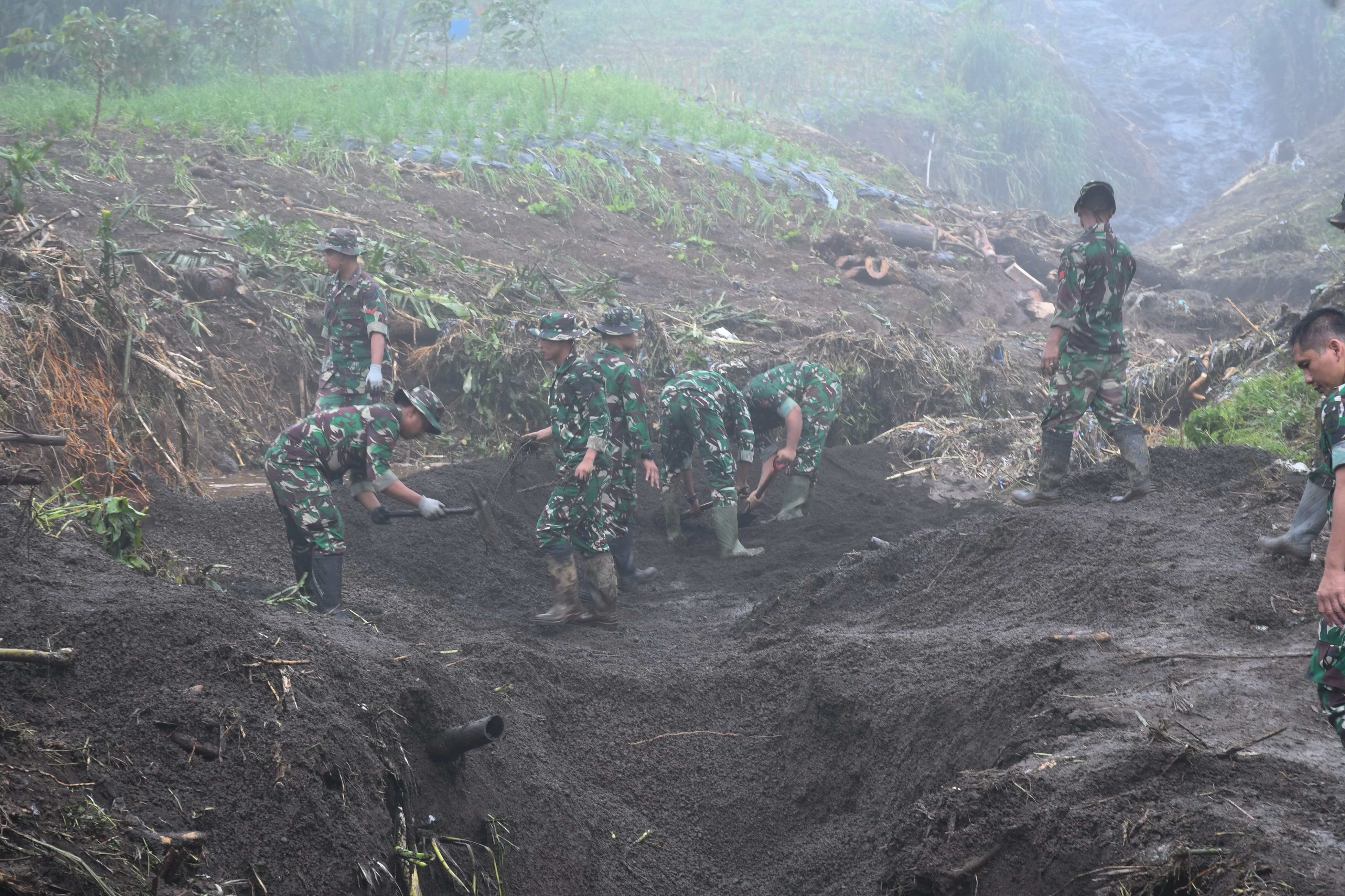 Di lokasi tersebut, Pangdam meninjau kondisi jembatan yang putus akibat banjir bandang di Dukuh Sawangan serta meninjau langsung lingkungan pemukiman warga terdampak.