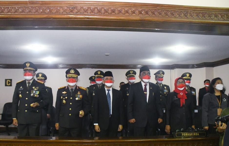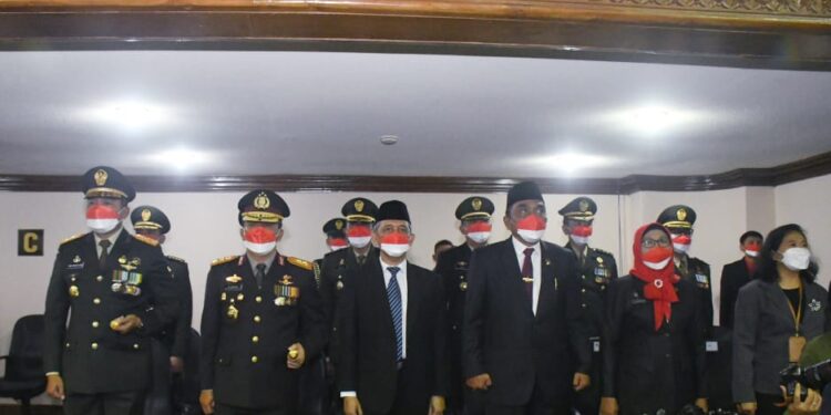 Semarang – bedanews.com – Pangdam IV/Diponegoro, Mayjen TNI Widi Prasetijono bersama Gubernur Jateng, H. Ganjar Pranowo, S.H, M.I.P, serta Ketua DPRD Jateng, H. Bambang Kusriyanto, B.Sc dan Kapolda Jateng, Irjen. Pol Drs. Ahmad Luthfi, S.H, S.St, M.K ikuti pelaksanaan sidang Tahunan MPR, sekaligus mendengarkan pidato Kenegaraan yang disampaikan langsung oleh Presiden RI, Ir. H. Joko Widodo dalam rangka HUT ke-77 Kemerdekaan RI secara virtual di Kantor DPRD Jateng, Jl. Pahlawan No.7, Semarang. Kegiatan tersebut digelar terpusat dari Gedung Nusantara, Kompleks Parlemen, Senayan, Jakarta, Selasa (16/8/2022).