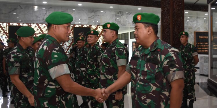 Semarang – bedanews.com – Pangdam IV/Diponegoro, Mayjen TNI Widi Prasetijono ucapkan selamat atas kenaikan pangkat satu tingkat lebih tinggi kepada 13 Perwira Menengah (Pamen) saat pimpin acara laporan korps kenaikan pangkat di Serambi Kehormatan Makodam, Senin (3/4/2023).