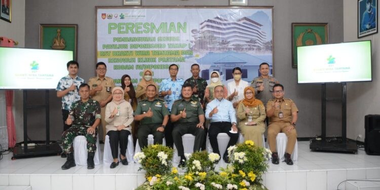 Semarang – bedanews.com – Pangdam IV/Diponegoro, Mayjen TNI Widi Prasetijono meresmikan Gedung Paviliun Diponegoro Tahap 1 di Rumah Sakit TK. III BWT Semarang. Selain itu pada saat yang sama juga diresmikan penggunaan Gedung Klinik Pratama di Makodam IV/Diponegoro yang telah selesai dibangun, Senin (14/11/2022).