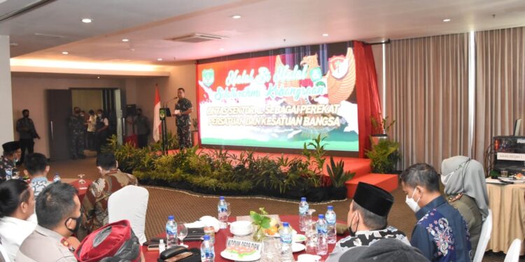 Bekasi – bedanews.com – Salam Pancasila! Mengawali sambutannya saat Pangdam Jaya, Mayjen TNI Untung Budiharto menghadiri acara halal bihalal dan silaturahmi kebangsaan dengan Ketua Forum Komunikasi Umat Beragama (FKUB) Bekasi serta paguyuban kesukuan di wilayah Korem 051/Wkt, bertempat di Hotel Grand Zuri Jababeka Cikarang Kab Bekasi, Jum’at (27/5/2022).