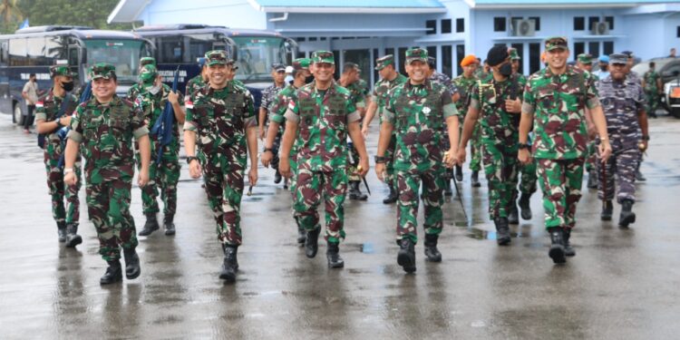 Biak – bedanews.com – Dalam kunjungannya di Markas Koopsud III Biak, Pangkogabwilhan III, Letjen TNI I Nyoman Cantiasa, S.E., M.Tr.(Han) disambut Pangkoopsud III, Marsekal Muda (Marsda) TNI Samsul Rizal, S.I.P, M.Tr (Han) beserta staf, Komandan Korem 173/PVB, Brigjen TNI Taufan Gestoro, Danlanud Manuhua, Marsma TNI Ronald Siregar, S.T., M.M., M.Tr (Han), Kas Guskamla, Kolonel Laut (P) Heru Wahyono, S.H, Danlanal Biak, Kolonel Marinir Karlos R. Deda, M.Tr.(Han), serta pejabat TNI di wilayah Biak Papua, Jum’at (20/5/2022).