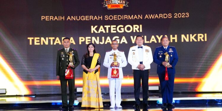 Jakarta – Tentara Nasional Indonesia menggelar Soedirman Awards tahun 2023 sebagai bentuk apresiasi kepada prajurit TNI yang memiliki dedikasi luar biasa bagi masyarakat. Panglima TNI Laksamana TNI Yudo Margono, S.E., M.M., selaku Inisiator Soedirman Awards memberikan trophi secara langsung kepada prajurit TNI terbaik di Balai Samudera, Kelapa Gading, Jakarta Utara, Senin (13/11/2023) malam.