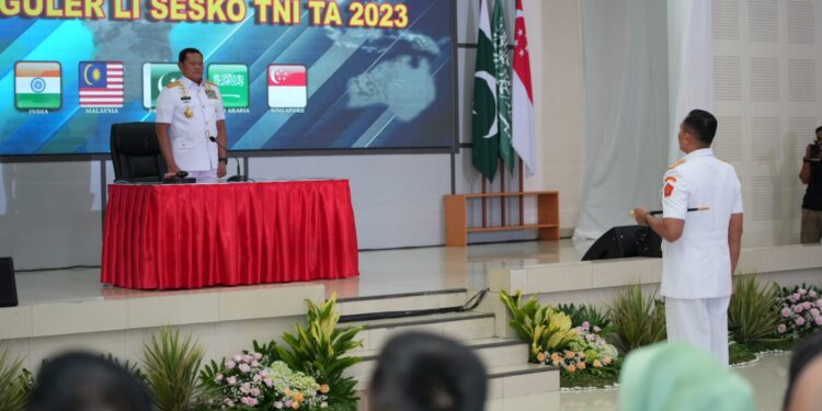 Bandung – bedanews.com – Panglima TNI Laksamana TNI Yudo Margono, S.E., M.M., bertindak selaku Inspektur Upacara pada pembukaan pendidikan reguler ke-51 Sesko TNI TA 2023, didampingi oleh Kasad, Kasal, Kasau dan Kapolri, bertempat di Sesko TNI Jl. R.A.A. Martanegara No. 11 Bandung Jawa Barat, Rabu (1/3/2023)