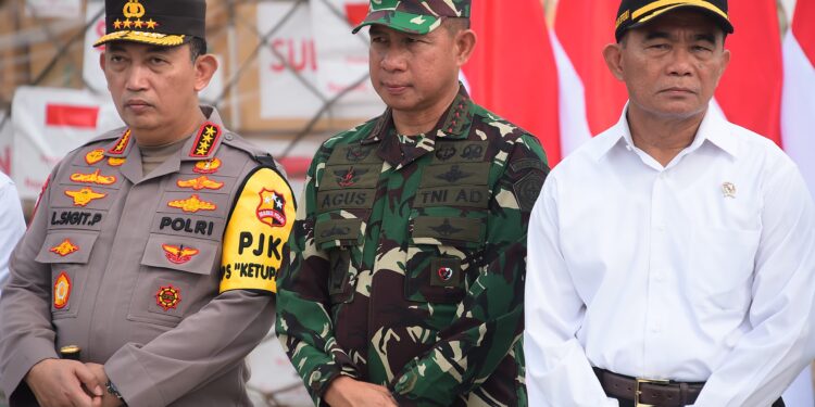 Jakarta – Panglima TNI Jenderal TNI Agus Subiyanto mendampingi Presiden RI Ir. H. Joko Widodo memberangkatkan bantuan kemanusiaan dari pemerintah Indonesia untuk Palestina melalui pemerintah Mesir serta bantuan kemanusiaan untuk konflik di Sudan, bertempat di Base Ops Lanud Halim Perdanakusuma, Jakarta, Rabu (3/4/2024).