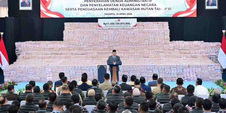 Dalam kegiatan tersebut, Satgas PKH menyerahkan denda administratif dan hasil penyelamatan keuangan negara senilai Rp 11,42 triliun, yang bersumber dari denda kehutanan Rp 7,23 triliun, PNBP penanganan korupsi Rp 1,96 triliun, setoran pajak Januari–April 2026 Rp 967,7 miliar, kontribusi pajak PT Agrinas Palma Nusantara Rp 108,5 miliar, serta denda lingkungan hidup Rp 1,14 triliun.