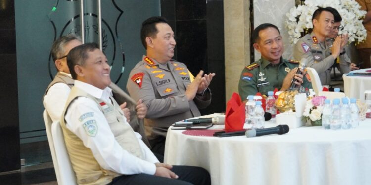 Jakarta – Panglima TNI Jenderal TNI Agus Subiyanto bersama Kapolri Jenderal Pol. Listyo Sigit Prabowo melaksanakan pemantauan dan pengecekan situasi keamanan ketertiban masyarakat (Sitkamtibmas) malam pergantian Tahun Baru 2024 yang dilaksanakan secara tatap muka dan virtual, bertempat di Gedung Promoter Polda Metro Jaya Jl. Jenderal Sudirman 55 Kebayoran Baru, Jakarta Selatan, Minggu (31/12/2023).