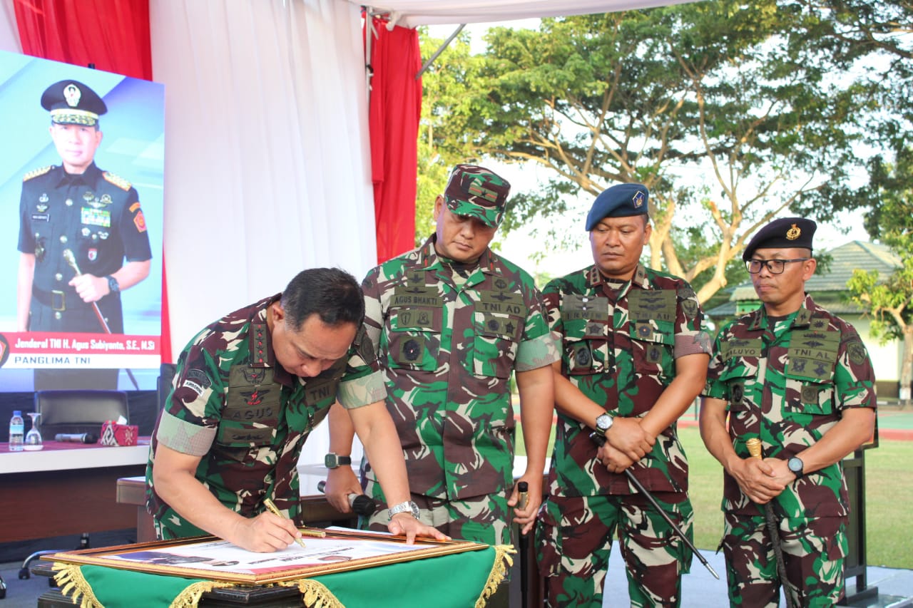 NTB – Panglima TNI Jenderal TNI Agus Subiyanto, S.E., M.Si., melaksanakan kunjungan kerja pertamanya disela-sela pengamanan WWF ke 10 ke Makorem 162/WB jalan Lingkar Selatan nomor 162 Kelurahan Pagutan, Kota Mataram, Nusa Tenggara Barat, Selasa (21/05/2024)