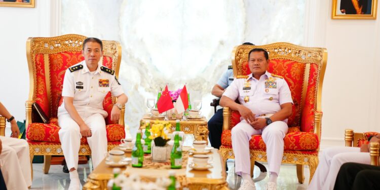Jakarta – Panglima TNI Laksamana TNI Yudo Margono menerima kunjungan Command PLA China Deputy Commander of Southern Theater Command, PLA (People Liberation Army) Vice Admiral Wei Wenhui bersama Deputy Commander of Southern Theater Command Navy, PLA, Rear Admiral Liu Rongfu dalam rangka mempererat hubungan bilateral pertahanan antara kedua negara yang selama ini terjalin dengan baik, bertempat di Ruang Tamu Panglima TNI, Mabes TNI, Cilangkap, Jakarta Timur, Kamis (19/10/2023).