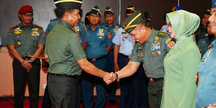 Jakarta – Panglima TNI Jenderal TNI Agus Subiyanto memimpin upacara laporan kenaikan pangkat 37 Perwira Tinggi (Pati) TNI, bertempat di Mabes TNI, Cilangkap, Jakarta Timur, Selasa (5/12/2023). Kenaikan pangkat setingkat lebih tinggi 37 Pati TNI tersebut tertuang dalam surat perintah Panglima TNI nomor Sprin 2466/XI/2023 tanggal 30 November 2023, dengan rincian 21 Pati TNI AD, 14 Pati TNI AL dan 2 Pati TNI AU.