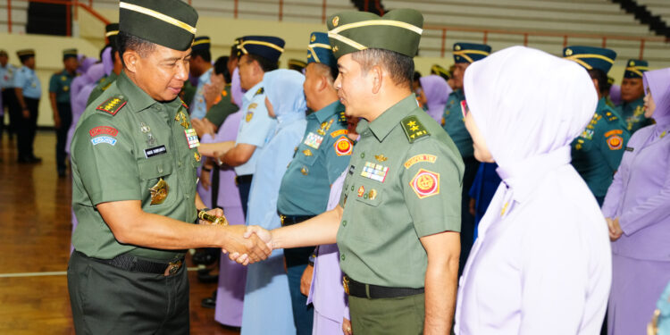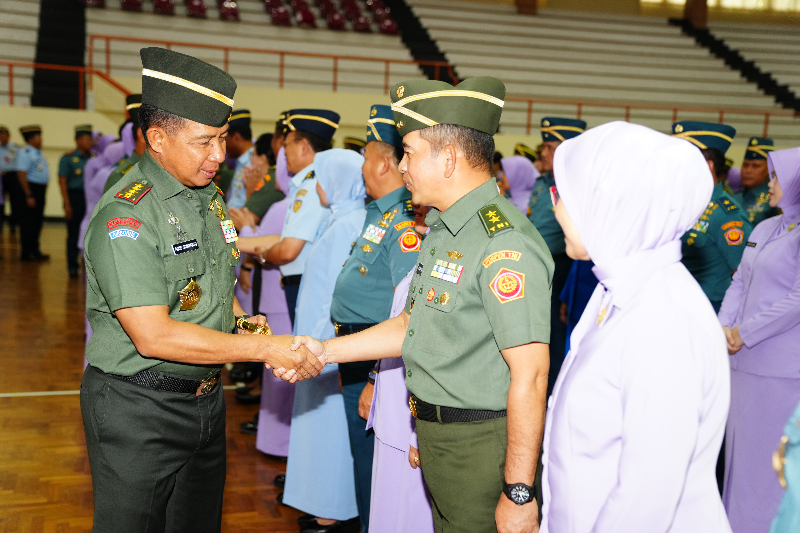 Jakarta – Panglima TNI Jenderal TNI Agus Subiyanto memimpin Acara Laporan Korps kenaikan pangkat 66 Perwira Tinggi (Pati) TNI, bertempat di GOR Ahmad Yani Mabes TNI Cilangkap, Jakarta Timur, Kamis (4/1/2024).
